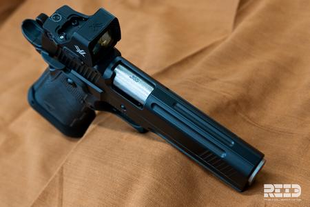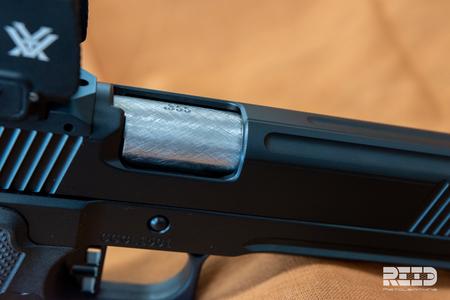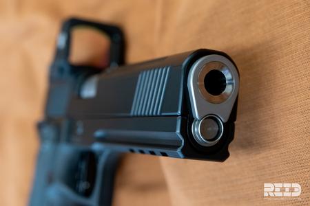 This is a fairly simple Limited Optics build. No frills, just a really solid gun. Traditional dehorn through. A KKM bushing barrel. And a satin Blued finish from Glenrock Bluing.