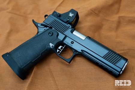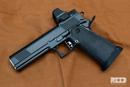 This is the ultimate carry build as far as I'm concerned. So much so, you can see my personal gun included in the pictures. The only change I added was the micro red dot. The build features some unique slide machining and hand cut bevel details that I have never seen on another 2011. The MJD Solutions grip module is fantastic and is lightweight with great functional texture. I also relieved the magwell portion to accept a shorter "flush" magazine while still maintaining a full size mainspring housing. Finish is a charcoal DLC.